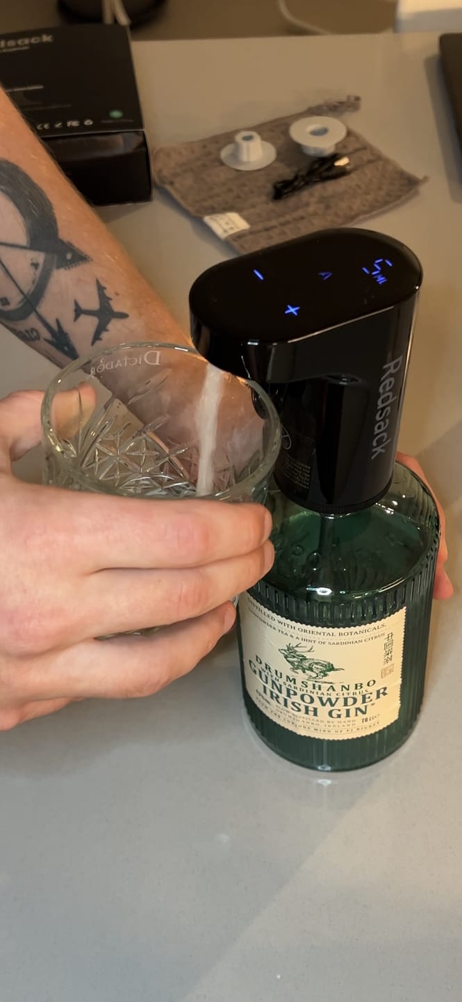 Awesome product. I love that you can customize the exact amount you want from each pour. This makes making mixed drinks so simple. Another great feature is, that if you are using it for wine, you have the option to aerate or not. The digital screen makes it simple to adjust and you get the same exact amount every time. Great product and easy to clean.