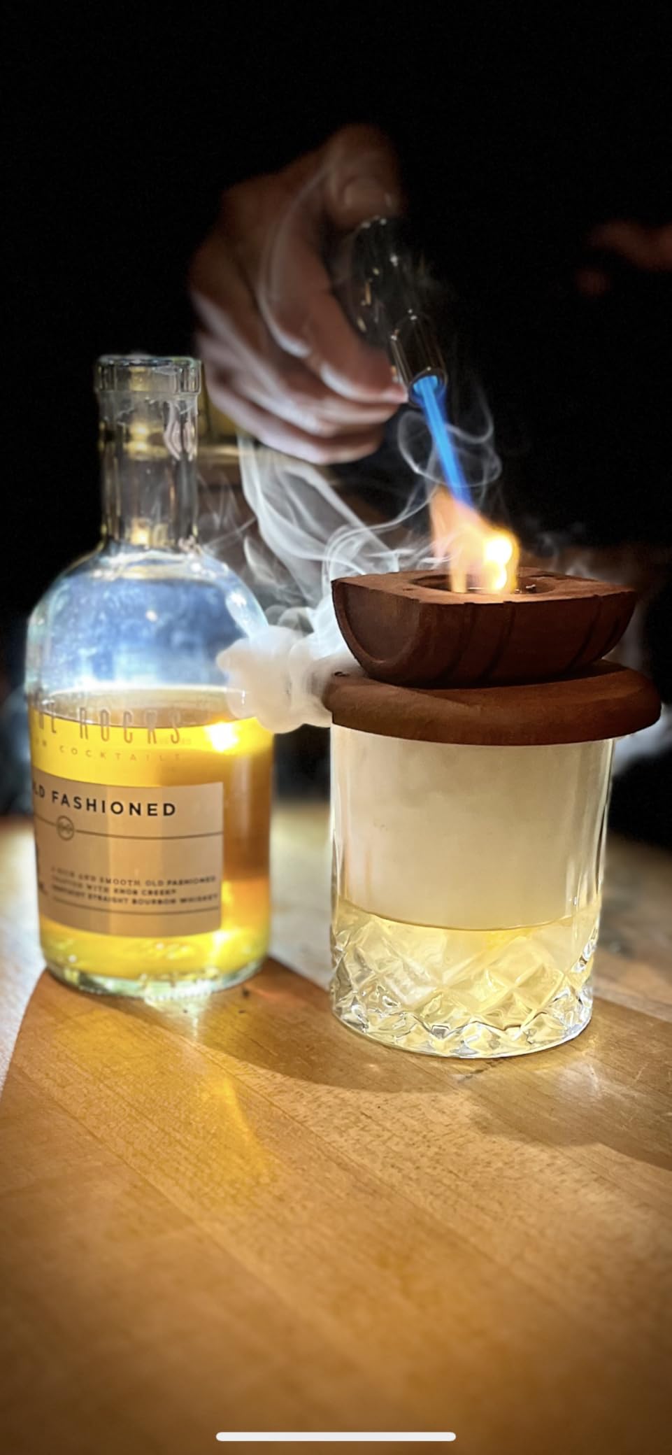 3. Ignite the Smoke - Use a torch to light the wood chips, allowing the smoke to fill the glass.Cover it briefly to trap the rich, aromatic flavor.